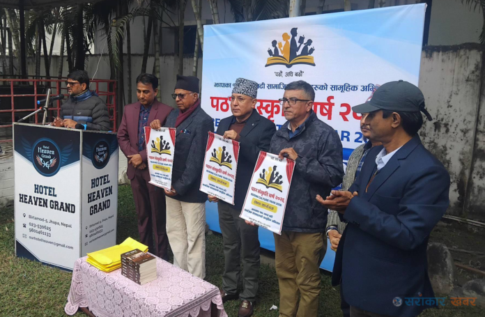 बिर्तामोड । झापामा पठन संस्कृतिको विकासलाई लक्ष्य गर्दै ‘पठन संस्कृति वर्ष २०२६’ घोषणा गरिएको छ । झापाका १०० भन्दा बढी सामाजिक, साहित्यिक तथा व्यावसायिक संघसंस्थाहरूको सामूहिक अभियानअन्तर्गत उक्त घोषणा गरिएको हो