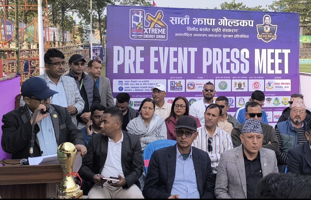 आज रंगशालामा आयोजित पत्रकार सम्मेलनमा झापा गोल्डकपका पूर्वअध्यक्षहरू महेन्द्रकुमार गिरी, होम पाण्डेलगायत तथा भद्रपुर झापा गोल्डकपका अध्यक्ष दिपेश ढकालले प्रतियोगिताको सफलताको शुभकामना व्यक्त गर्नुभएको थियो।